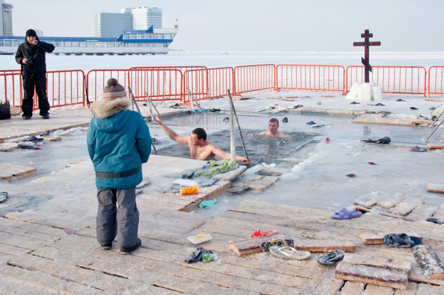 Op 19 januari, tijdens het Russisch Orthodoxe nieuwjaar, vieren ze in Rusland de doop van Jezus door Johannes de Doper. Deze feestdag heet Kreshenie. Volgens de overlevering zijn de meren en rivieren op deze dag gewijd en is het traditie een duik te nemen in het koude water. Sommige mensen maken hun eigen wak en vieren de dag met vrienden. Anderen maken gebruik van een openbaar kruisvormige wak, die net als hier in Vladivostok, overal worden aangelegd door de kerk. Volgens schattingen gaan elk jaar 800 000 Russen voor de traditionele ijsduik.